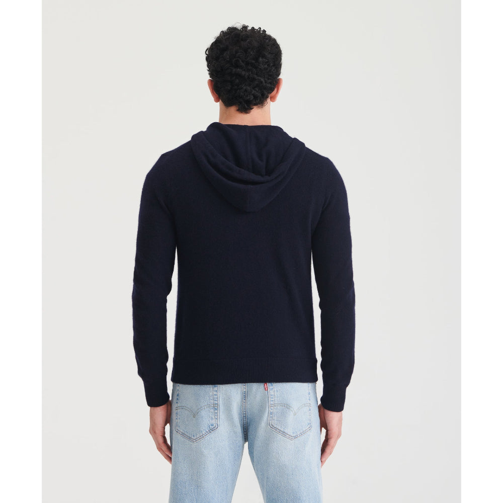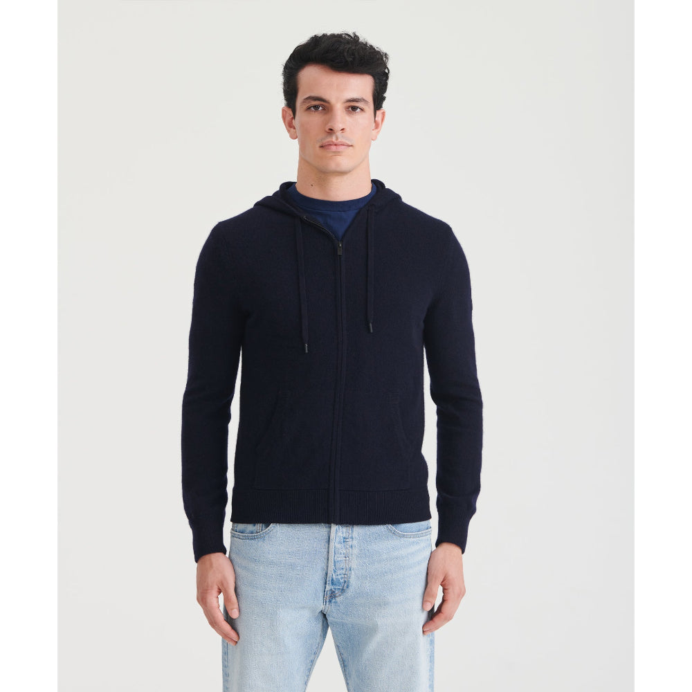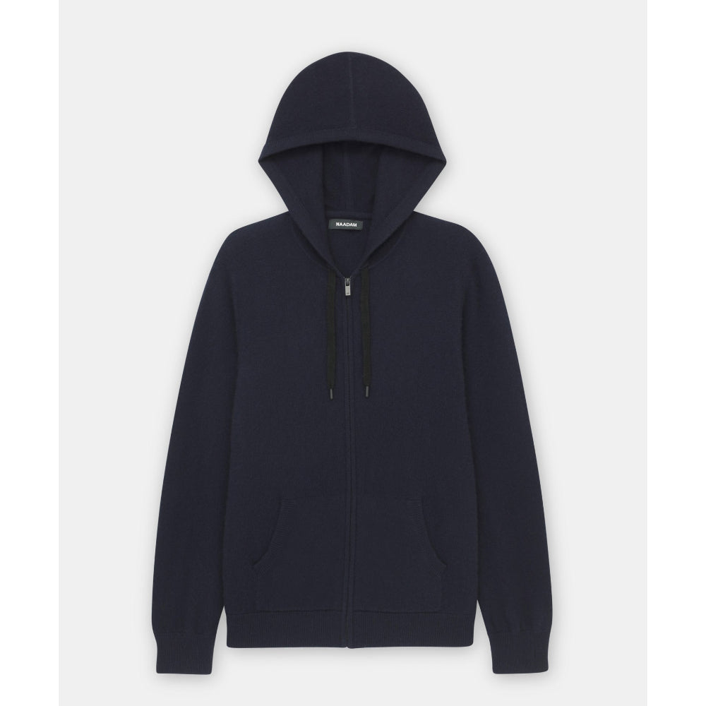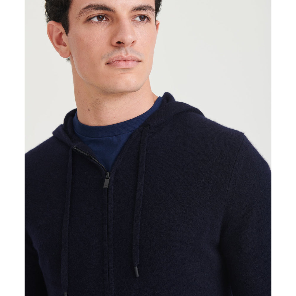 The Cashmere Zip Up Hoodie is an elevated essential with a relaxed classic fit and long classic length designed to sit comfortably at the center of the hips. It features a drawstring hood, front pockets, ribbed details, and full-zip construction.