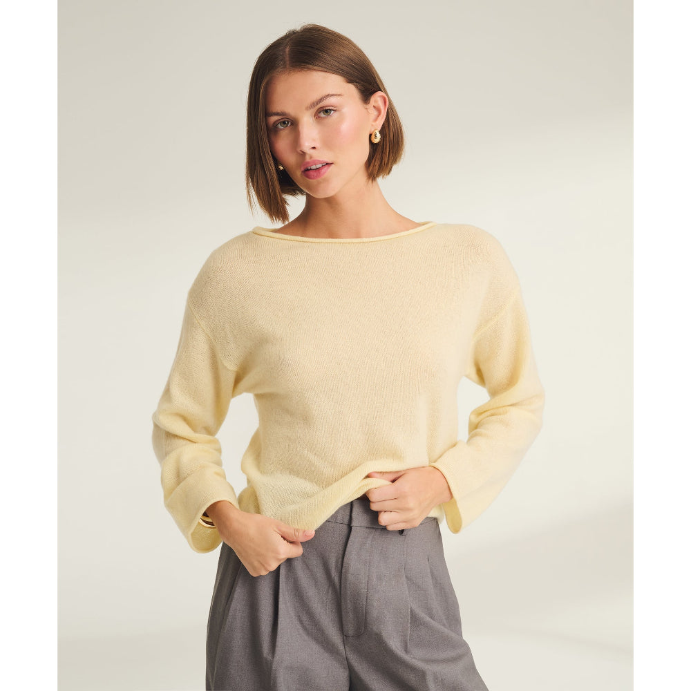 Lightweight Cashmere Relaxed Boatneck - Butter Yellow
